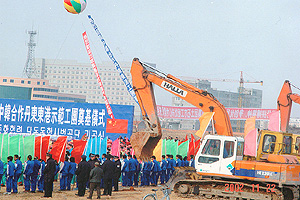 以下是我公司与韩国合作开发的“丹东东港示 范工团”一期工程的奠基仪式图片,点击可放大: